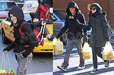 Pete Wentz had Bronx on his back yesterday when they stepped out to tackle their holiday lists without Ashlee. It was apparently a pretty successful trip, since Pete twittered that his Christmas shopping was all done. Ashlee was with Pete later in the afternoon, though, when they hit the grocery store to pick up a few bags of food. They'll continue nesting in New York for the foreseeable future, as Ashlee's stint on Broadway goes until Feb. 7. She was off for a performance last night as Pete headed out to see the premiere of Sherlock Holmes, where he was apparently pretty captivated by Jude and RDJ's good looks.