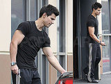 Taylor Lautner was was decked out in black and showing some muscle Saturday during a trip to his gym in LA. He's coming off another natural high following his multiple wins at last week's People's Choice Awards, and he's expected to be back for more red carpet fun as a presenter at Sunday's Golden Globes - don't forget to fill out Buzz's ballot! Taylor won't be the only Twilight star at the show, since Anna Kendrick is nominated as a Best Supporting Actress for her work in Up in the Air. Taylor and Anna are still waiting, like the rest of us, to know what will happen with Breaking Dawn - apparently production on the film is on hold until Stephenie Meyer says it's OK to break her book into two parts.