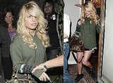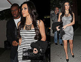 Kim Kardashian and Reggie Bush stepped out in LA last night for a dinner at Nobu. They were joined by a group of pals that included Kim's stepbrother Brody Jenner, who's single and already mingling on blind dates after his recent breakup from Jayde Nicole. Once the bill came their way, Kim tweeted that they played a game of credit card roulette to see who'd get stuck paying. The honors ended up going to Brody, and they ended the evening off at a bowling alley which meant Kim wasn't home to see her own appearance last night on The Jay Leno Show - she chatted with Jay about her new commercial for Carl's Jr. and chowed down on some fried Oreos. Check out the video below.
