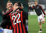 David Beckham took to the field for some pre-game stretching before joining AC Milan to take on Genoa this evening. The match was David's first since re-joining the league on loan from the LA Galaxy, and he helped Milan take home a win. David jetted to Italy just after Christmas, while his family made their way home to California on Sunday in time for the boys to return to school. Victoria's keeping an eye on their sons Romeo, Cruz and Brooklyn for the time being, and now there's even a new puppy keeping them company while David's away for work.